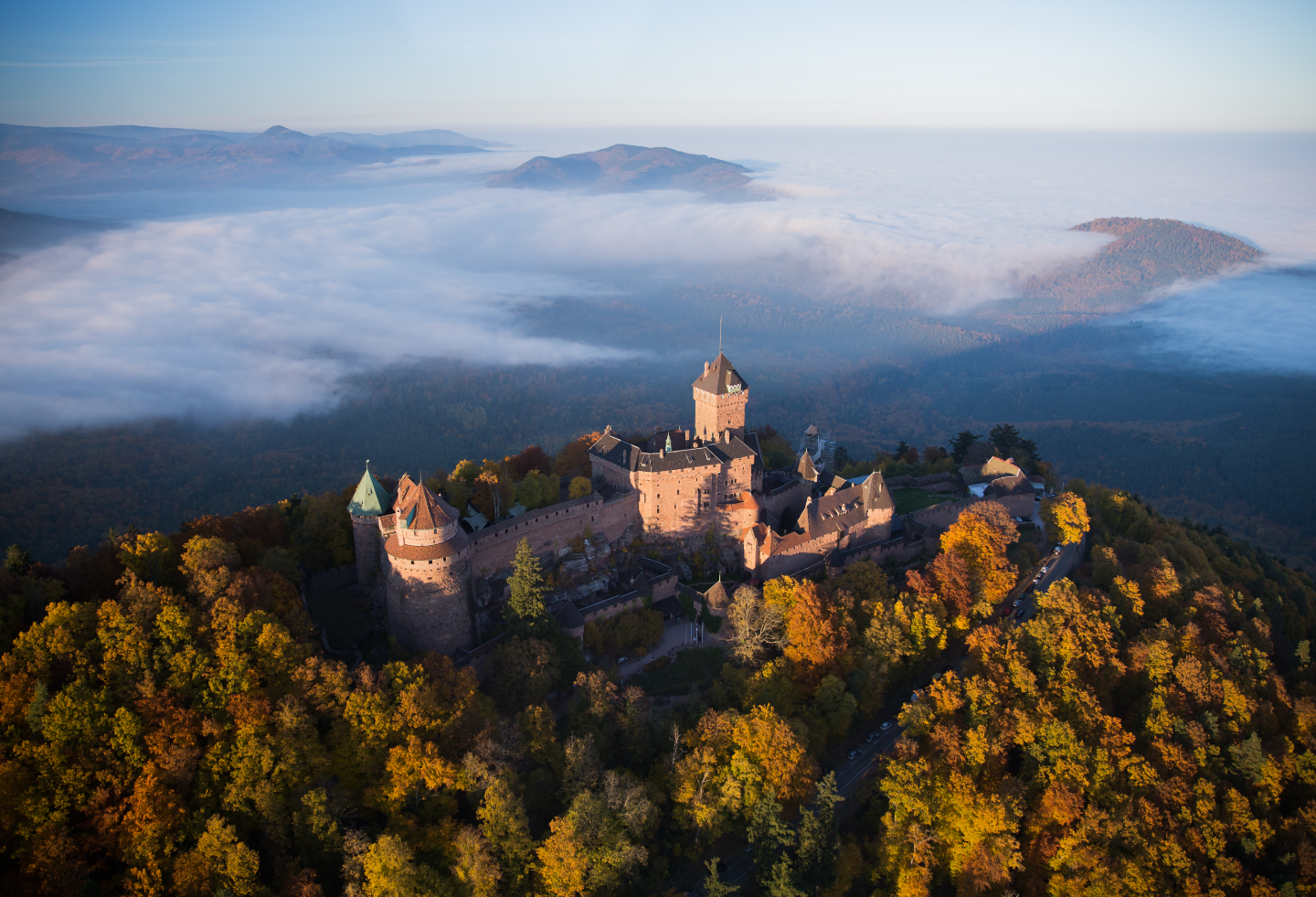 Au sommet du château du Haut-Koenigsbourg, vous découvrirez un point de vue exceptionnel. Perché à une altitude de 737 mètres, cet emplacement offre une vue imprenable sur la plaine d'Alsace, les Vosges, la Forêt-Noire, et par temps clair, même les Alpes peuvent se laisser entrevoir. Vous aurez l'opportunité de capturer non seulement l'essence du château lui-même, mais aussi la majesté de la plaine environnante. Si vous êtes équipé d'un drone, c'est l'endroit parfait pour réaliser des vidéos et des clichés exceptionnels.